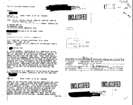 지난 2011년 1월 18일에는, 한 재미 동포에 의해 김재규에 관한 미국의 당시 비밀문서가 모두 비공개 처리되었다는 사실이 밝혀지고, 김재규가 박정희 대통령을 저격하던 당일 오후 2시에 글라이스틴 주한미국대사를 만난 사실이 뒤늦게 드러나서 김재규의 박정희 암살에 대한 의문과 관심이 한층 더 높아지기도 했다.