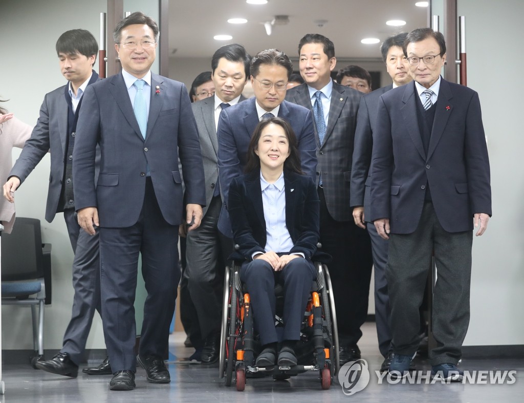 이해찬 대표는 "입당해주신 것에 감사드린다. 어려운 환경에서 불굴의 의지로 극복해 소통을 통해 함께 하는 희망을 갖게 하는 회견문이었다"며 "훨씬 더 많은 분이 이렇게 희망을 가지고 살아갈 수 있는 나라를 만드는 일이 민주당의 매우 소중한 소명"이라고 말했다.
