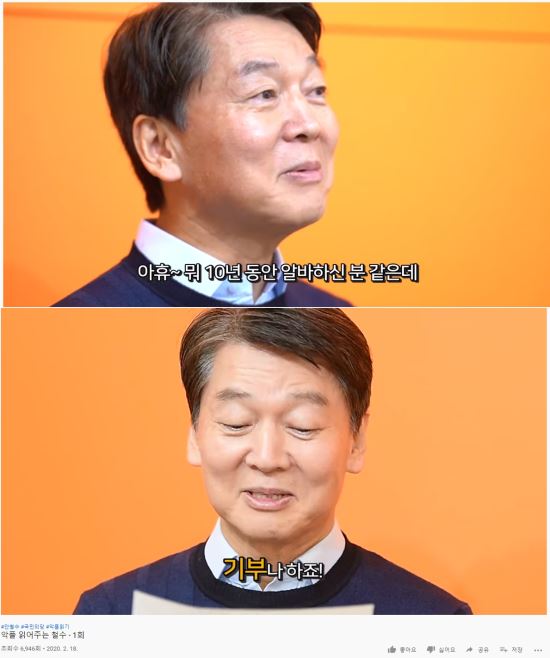18일 안철수는 자신의 유튜브 계정에 ‘악플 읽어주는 철수- 1회’라는 동영상을 올렸다. 동영상 하단에는 ‘악플에 대처하는 국민의당 안철수 창당위원장의 촌철살인 한 마디’라는 설명이 달렸다.