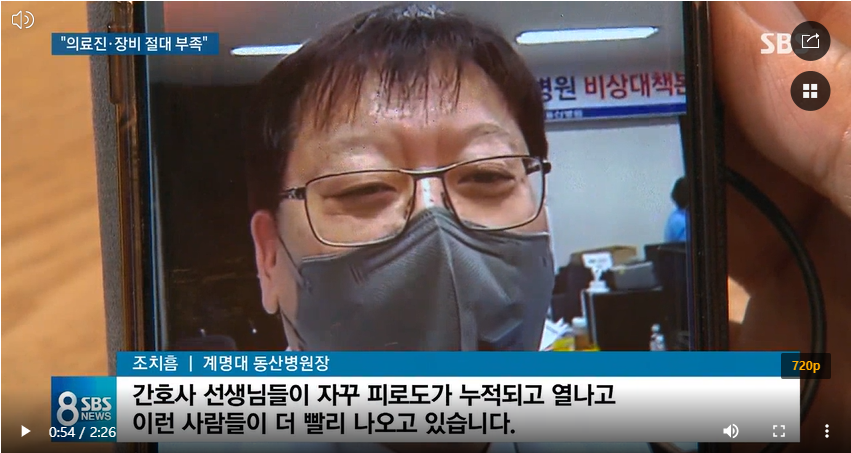 동산병원 간호사 파트장은 “간호사들 우리 자원할 수 있도록 좀 많이 도와주셨으면 감사하겠다”라고 말했다. 마지막으로 조치흠 동산병원장은 “이 병원을 통해서 빠르게 이 병이 조절되고 나아졌으면 좋겠다. 그것이 우리의 바람이다”라고 전했다.