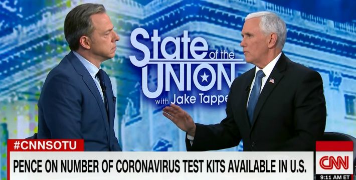 CNN의 '스테이트 오브 유니언' 프로그램 앵커인 제이크 태퍼가 한국과 미국정부의 대응을 비교하며 펜스 부통령을 몰아붙였다.