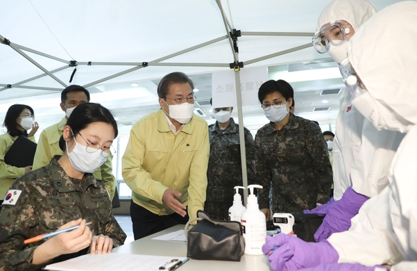 한편 문재인 대통령은 지난 3월 2일 국군간호사관학교를 찾아 신임 소위 교육을 참관했다. 청와대는 "현직 대통령의 국군간호사관학교 방문은 이번이 처음"이라고 했다. 이달 1일 자로 소위로 임관한 간호장교 60기 75명은 3일 임관식 후 대구 우한 코로나 대응 현장에 투입될 일정을 앞두고 문 대통령이 격려차 방문한 것이었다. 문 대통령은 "임관하자마자 곧바로 (대구 방역 현장으로) 보내게 되어 안쓰럽고 미안하다"면서 "대구·경북 주민들을 위한 든든한 방패 역할을 잘해 주시길 바란다. 무사히 돌아올 수 있게 최선을 다해달라"고 했다.
