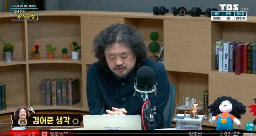 김어준은 6일 방송에서 “중국이 정말 (우한 코로나 확산의) 문제였다면 인구 2300만 수도권은 왜 10만명당 1명 꼴로 확진자가 나오겠나”라며 “숫자가 명백히 말하고 있다. 우리 코로나 사태는 대구 사태이자 신천지 사태라는 것을"이라고 강조했다.