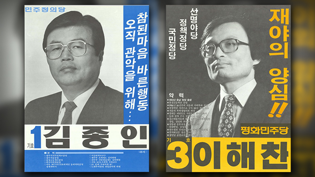 당시 재선이던 김 위원장은 경제민주화를 구호로 내세웠다. 정치 신인 이 대표는 자주외교와 평화통일을 공약으로 삼았다. 선거에선 31.1%를 득표한 이 대표가 27.1%에 그친 김 위원장을 꺾는 이변을 일으켰다. 13대 총선은 이후 두 사람에게 다른 기억으로 남았다. 김 위원장의 유일한 지역구 출마는 패배로 끝났지만, 이 대표는 관악을에서 내리 5선을 달성하며 거물급 정치인으로 성장했다.