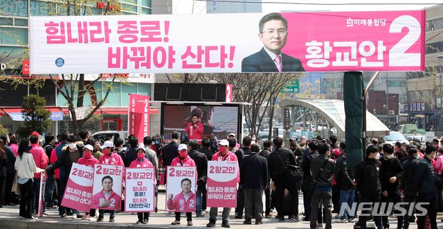 반면, 보수성향 지지가 상대적으로 많은 평창동 일대에서 유세에 나선 황교안 후보는 "4·15 총선에서 조국 따라하기, 조국의 종자들을 막아내고 총선에 나온 사람을 떨어뜨려야 한다"고 날을 세웠다. 국어 사전에 '종자'는 "사람의 혈통을 낮잡아 이르는 말"로 규정하고 있다. '특정 대상을 차별 비하하는 의미를 포함할 수 있다'고 부연설명돼 있다.