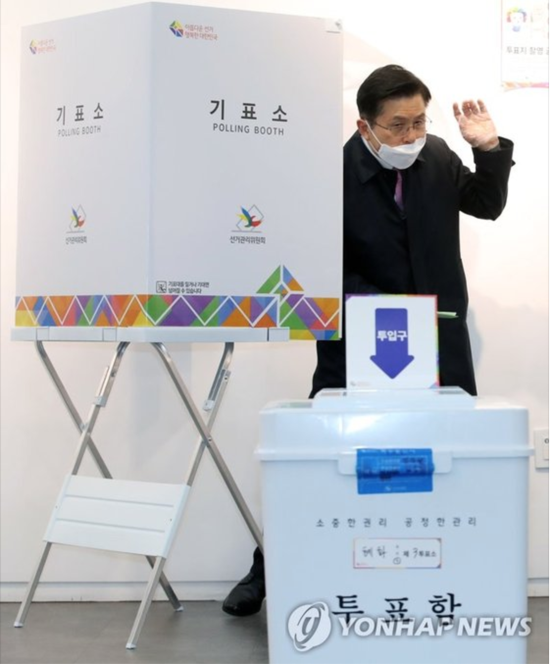 당초 황 대표는 투표소에 들어서면서 투표소 직원에게 기표소에 등 뒤를 가리는 가림막이 없음을 지적했다.
