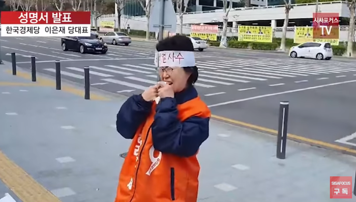 앞서 이 대표는 지난 12일 서초동 대검찰청 앞에서 “이은재가 21대 국회에서 윤석열 검찰총장의 호위무사가 되어 윤석열을 지키겠다”며 준비한 현수막 위로 올라서서 오른손 검지를 깨물어 피를 내고는 ‘윤석렬 사수’라고 썼다. ‘윤석렬’은 윤석열의 오기로 보인다.