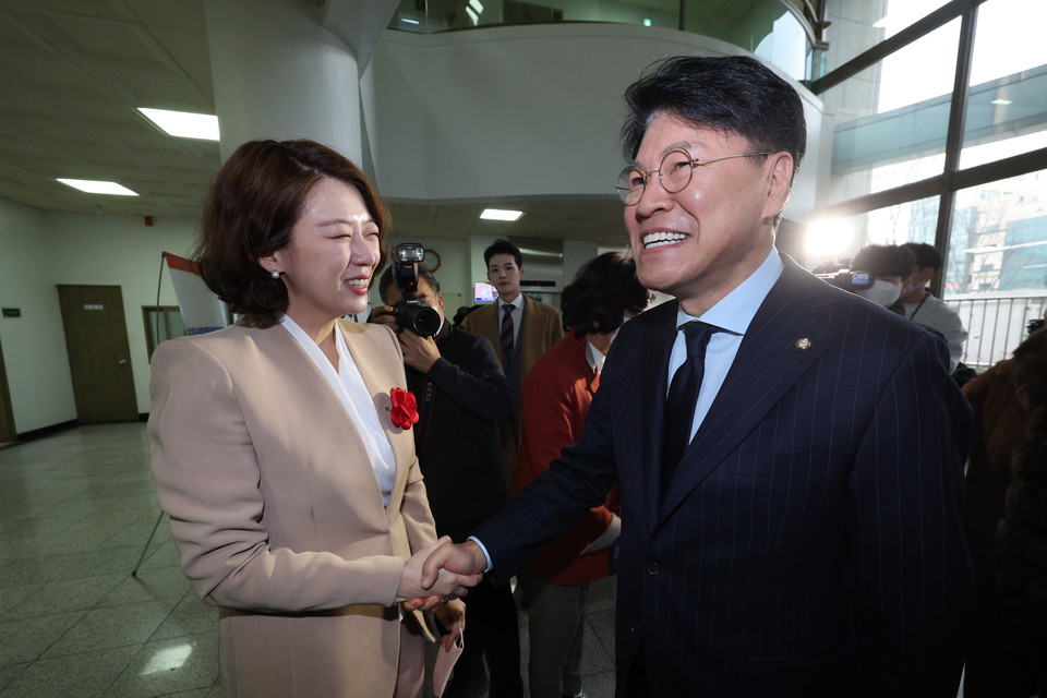 3.8 전당대회 도전을 놓고 분기탱천하던 나경원 전 의원이 갑자기 의기소침해져버렸다. 진즉에 타이밍을 놓쳤다고 봤지만 한가롭게 구인사 동화사로 다니며 ‘출마 뉘앙스’를 줄줄 흘리다 결국 윤석열 대통령의 코털을 건드려 납작 엎드린 꼴이 됐다. 그런데 나 전 의원이 결정적으로 ‘한방’을 먹은 것은 윤 대통령의 직접타격이 아니라 새카만 ‘후배’들 때문이었다. 국민의힘 초선의원 50명이 나 전 의원을 직격하는 성명서를 발표했던 것이다.