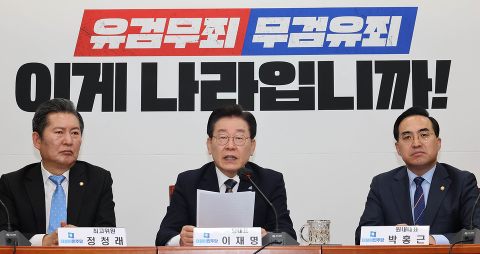 이재명 대표는 대선후보 시절 ‘국회의원 불체포 특권 폐지’를 공약으로 내걸었다. 하지만 올해 초 국회 사랑재에서 연 기자회견에서 ‘불체포특권을 내려놓을 수 있겠느냐’는 질문에 답하면서는 “경찰이 적법하게 권한을 행사한다면 당연히 수용하겠지만, 경찰복을 입고 강도 행각을 벌이고 있다면 판단은 다를 수 있다”고 대답해 공약을 지키지 않는다는 비판을 받은 바 있다. 이 대표가 앞으로 그에게 씌워질 ‘내로남불 프레임’을 어떻게 극복해나가느냐가 이번 전쟁의 최대 승부처가 될 전망이다.