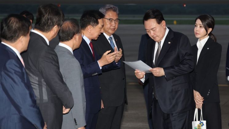 윤 대통령이 ‘쓸데없이’ 우크라이나를 방문해 수해 대응이 미진했다는 식의 비판은 정치 공세적 성격이 짙다. 하지만 윤 대통령이 전용기에 내려 김기현 국민의힘 대표로부터 무슨 종이쪼가리를 받으며 심각한 표정을 짓는 순간, 뭔가 일이 잘못돼 가고 있다는 생각이 들었다.