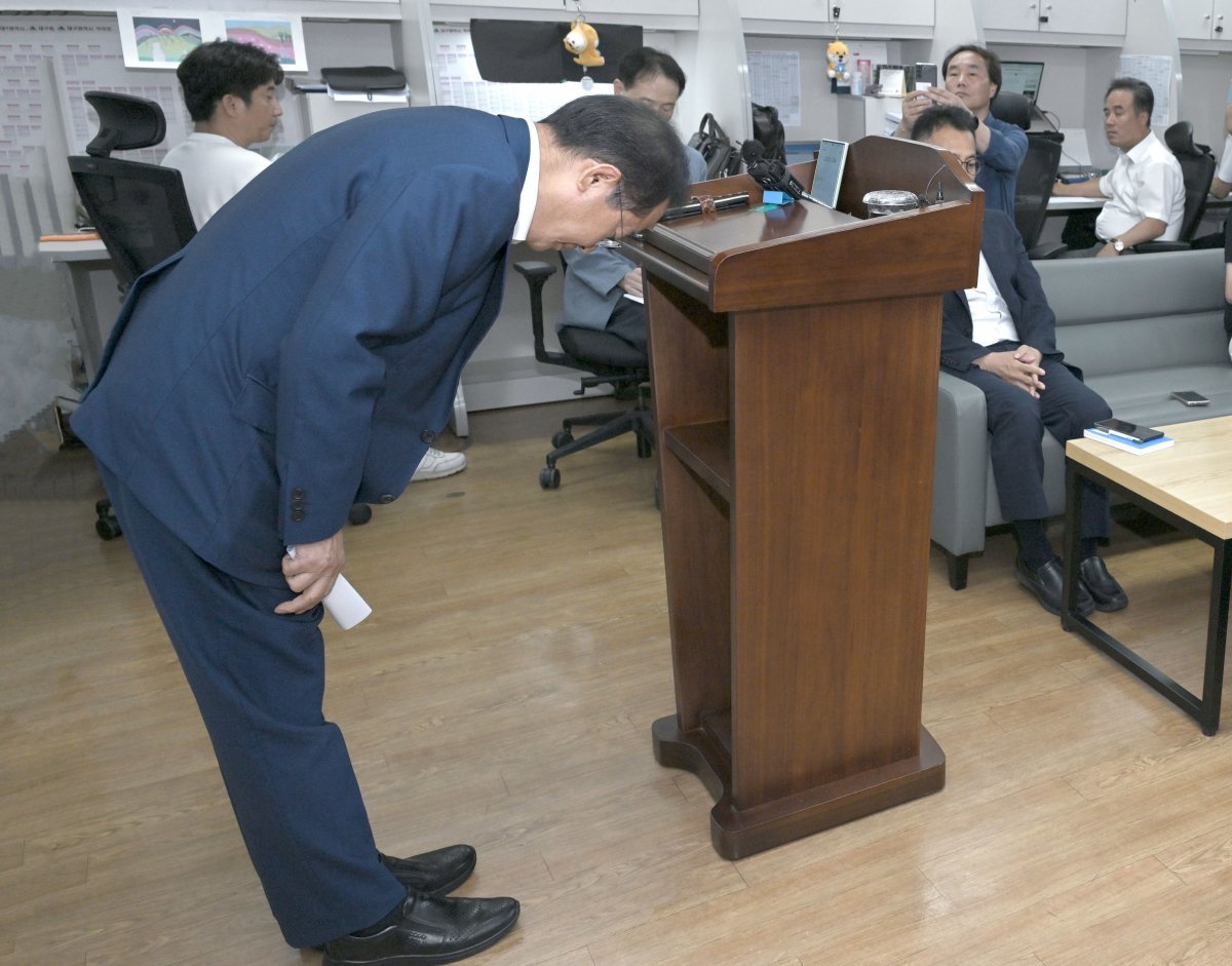 그는 “(극한 호우 중 골프가) 국민 눈높이에 안 맞는다는 지적에 동의 못 하시나요?”라고 기자들이 묻자 “기자들 여러분들이나 눈높이 맞게 좀 질문하세요, 예? 그게 어느 시대의 법입니까? 주말에 공무원들이 자유스럽게 개인 활동 하는 겁니다. (중략) 택도 아닌 소리 하고 있네”라며 기자들을 공격했습니다.