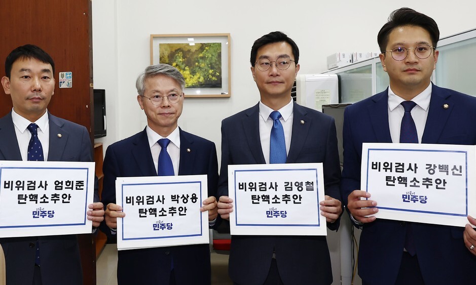 더불어민주당이 현직 검사 4명에 대한 탄핵소추안을 발의했다. 김용민 의원은 “검찰 조직은 기소권과 공소권을 양손에 쥔 채 온갖 범죄를 저지르며 대한민국에 어렵게 꽃피운 민주주의의 근간을 뒤흔들고 있다”라고 검사 탄핵 배경을 설명했다.