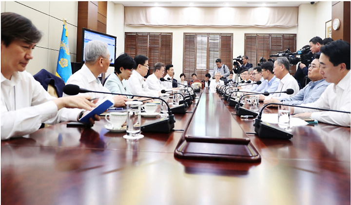 지난 10일 수석·보좌관 회의(이하 수보회의)가 열리는 청와대 여민1관 3층 소회의실. 임종석 대통령 비서실장과 조국 민정수석 등 휴가자들을 제외한 문재인 대통령과 청와대 참모진들이 삼삼오오 모인 가운데, 회의를 앞두고 차를 제공하는 직원으로부터 짧은 '차 강연'이 진행됐다.