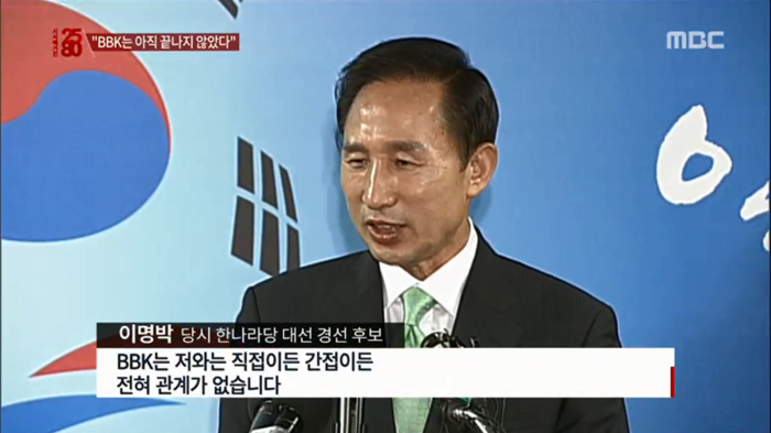 몇년간 논란이 지속되던 'BBK 관련 의혹'과 '이명박 전 대통령의 해명' 형식으로 구성됐다.