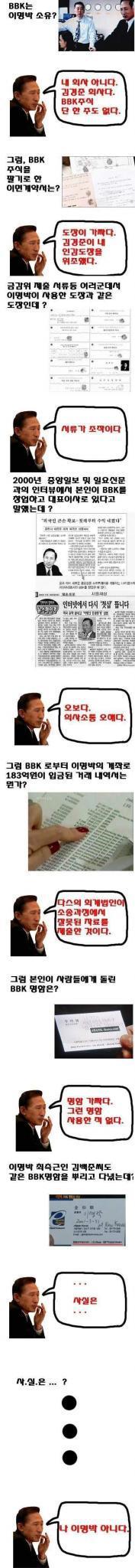 'BBK 30초만에 이해하기'라는 한 네티즌의 게시물이 한때 큰 인기를 끈 적이 있다. '그것이 알고싶다'에서 이명박 전 대통령의 BBK사건을 재조명하면서 이 게시물도 다시 회자되고 있다고 한다.