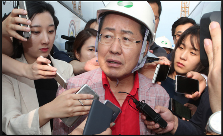 홍준표 자유한국당 대표가 지난 8월 공사가 중단된 울산 신고리 원전 5.6호기를 방문해 정부의 탈원전 정책을 비판하고 있다.
