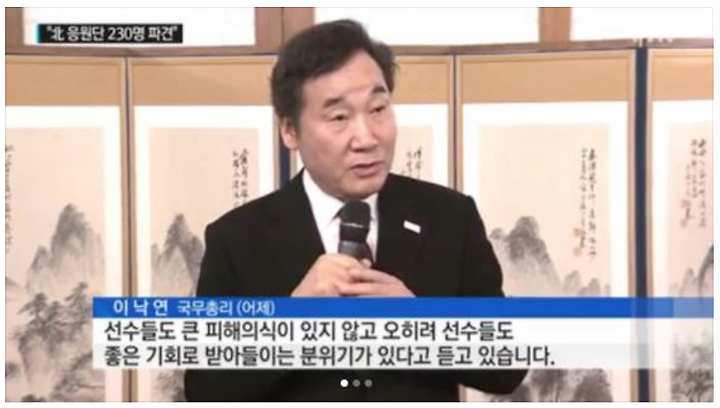 그는 또 이낙연 국무총리가 "선수들도 큰 피해의식이 있지 않고 좋은 기회로 받아들이는 분위기다" "여자 아이스하키가 메달권에 있지 않다"고 말하는 사진을 올리기도 했다. 이 총리는 19일 "우리 여자 아이스하키팀이 메달권에 있지 않다고"한 발언에 대해 공개 사과했다.