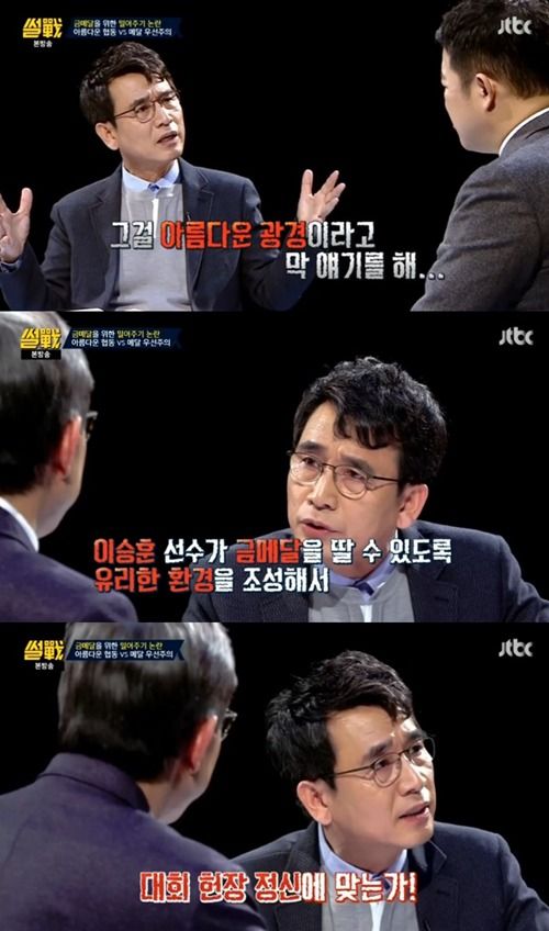 유시민 작가의 발언에 박형준 교수는 "이유 있는 딴지라고 본다. 우리 사회가 모두 압축 성장을 했다. 스포츠도 그러하다. 결과 지상주의다"고 의견을 밝혔다.