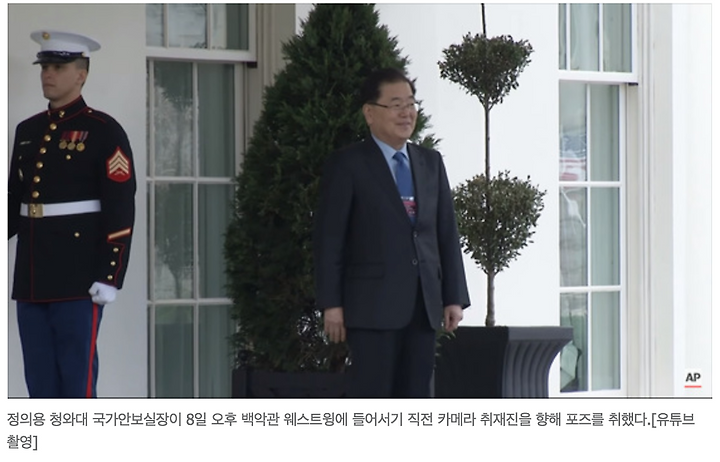 정 실장과 서훈 원장은 이날 오전 워싱턴 덜레스 국제공항을 통해 입국한 후 오후 2시 25분쯤 백악관에 도착했다.