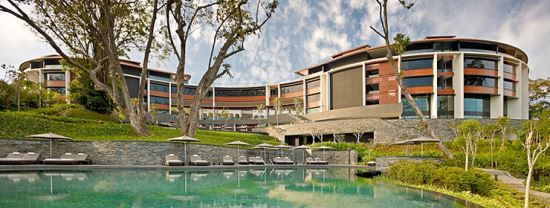 센토사섬은 섬 전체가 사실상 하나의 리조트다. 카펠라 호텔은 숲에 가려진 언덕 위에 자리 잡고 있다. 진입로만 차단하면 일종의 ‘요새’가 된다. 호텔 주변은 울창한 나무로 뒤덮여 있다. 호텔을 바라보는 위치인 팔라완섬 쪽에서도 호텔 내부는 잘 보이지 않는다.