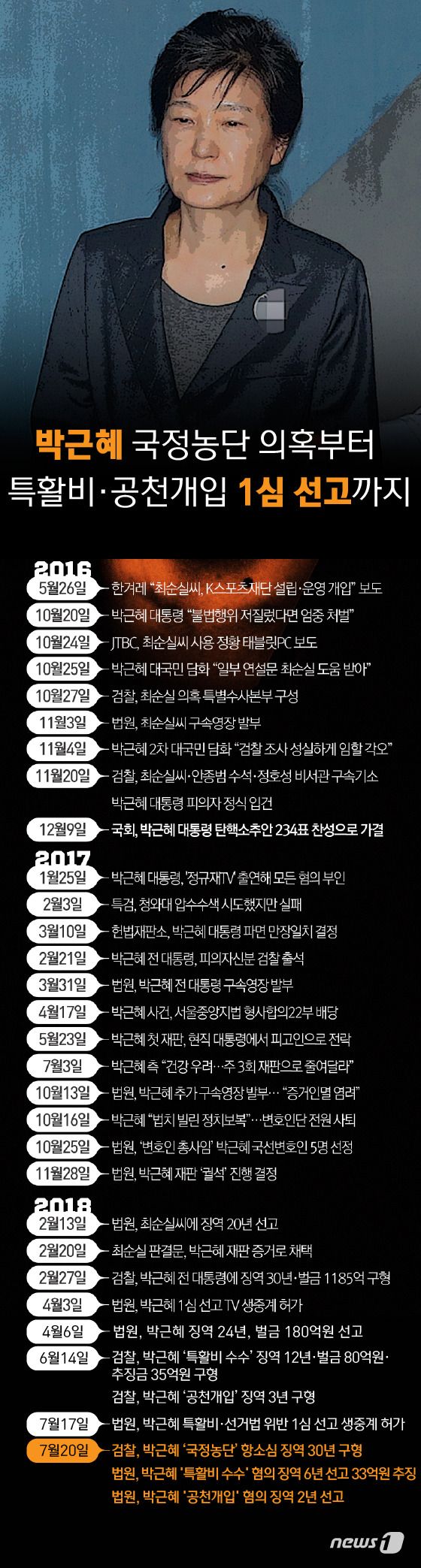 검찰은 박 전 대통령의 국정농단 사건 항소심에서 1심이 선고한 징역 24년보다 무거운 징역 30년을 선고해달라고 재판부에 요청했다.